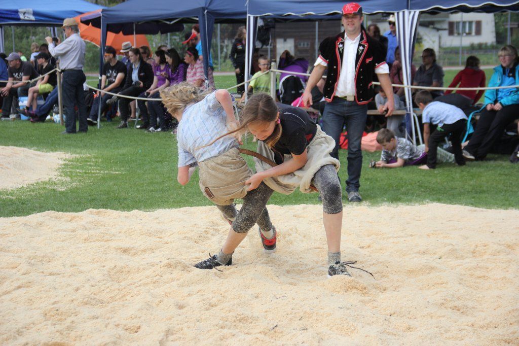 Schwingen ist der Schweizer Nationalsport. 1235 wurde das erste Kräftemesse der Älpler und Sennen regristriert. 1895 wurde der Eidgenössische Schwingerverband gegründet. Seit 1992 gibt es auch den Eidgenössischen Frauenschwingverband. In den Schwinghosen und im Sägemehl wird gekämpft. Der/ die auf dem Rücken liegt, hat verloren. Wenn niemand gewinnt, ist es ein gestellter Gang. = unentschiedener Kampf